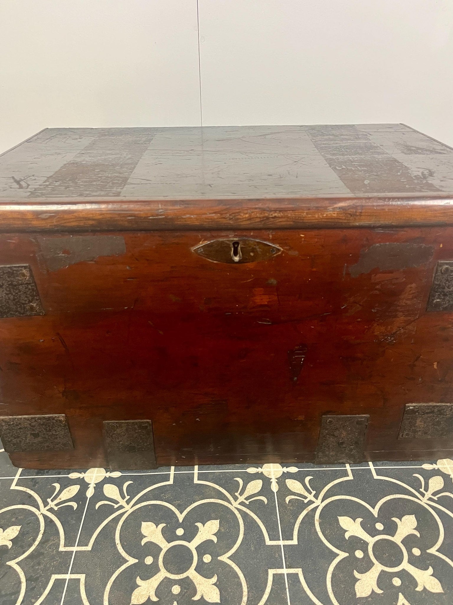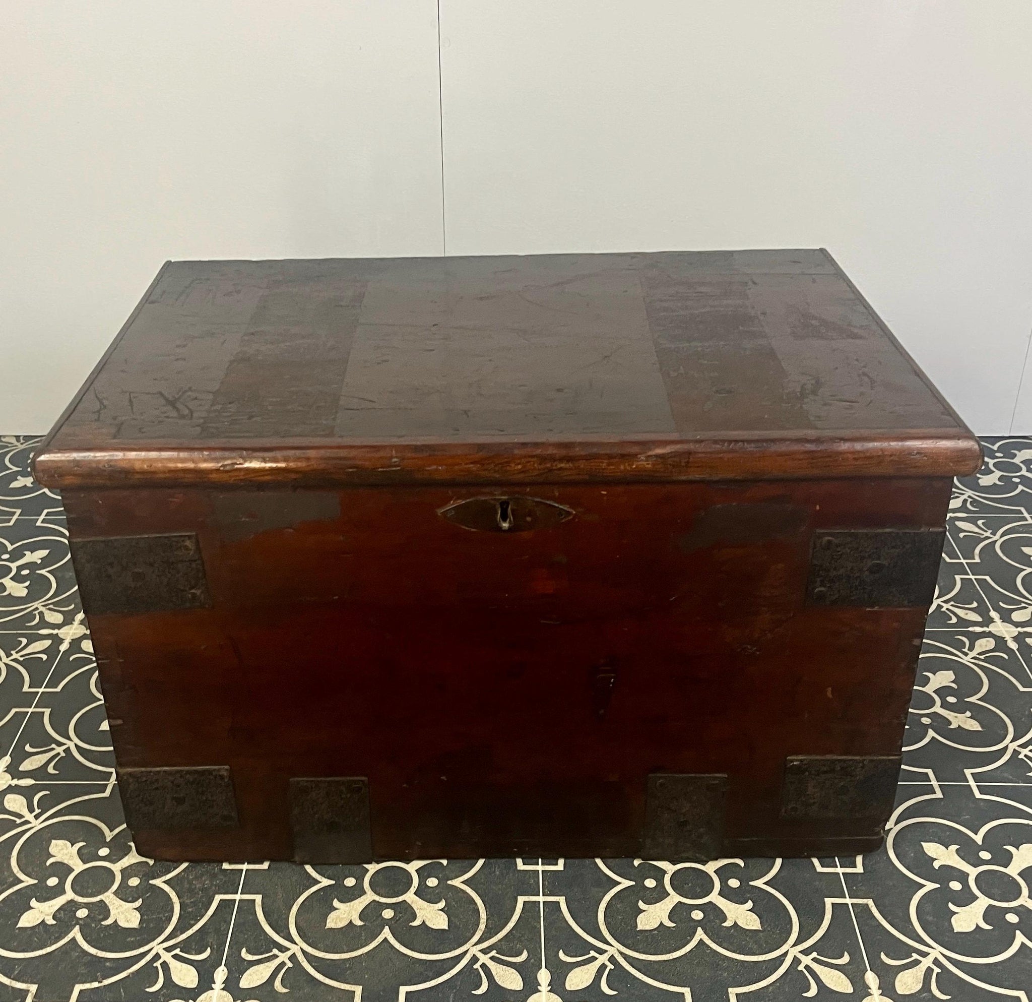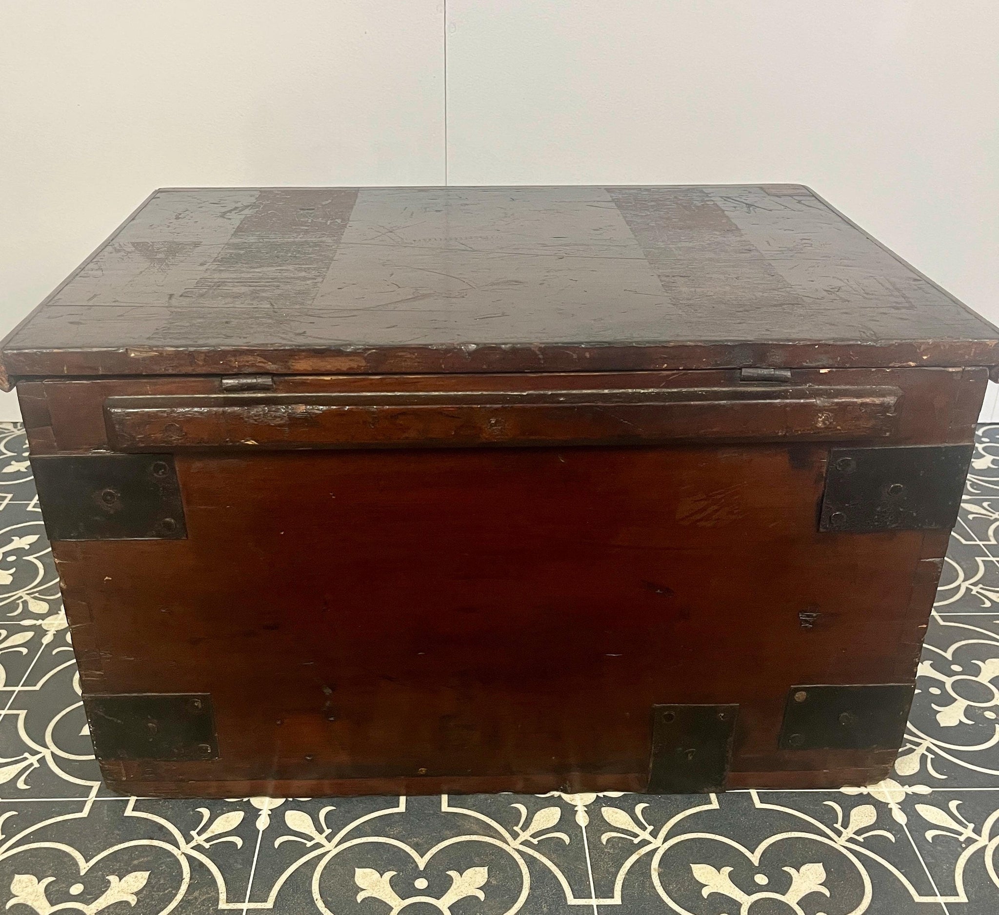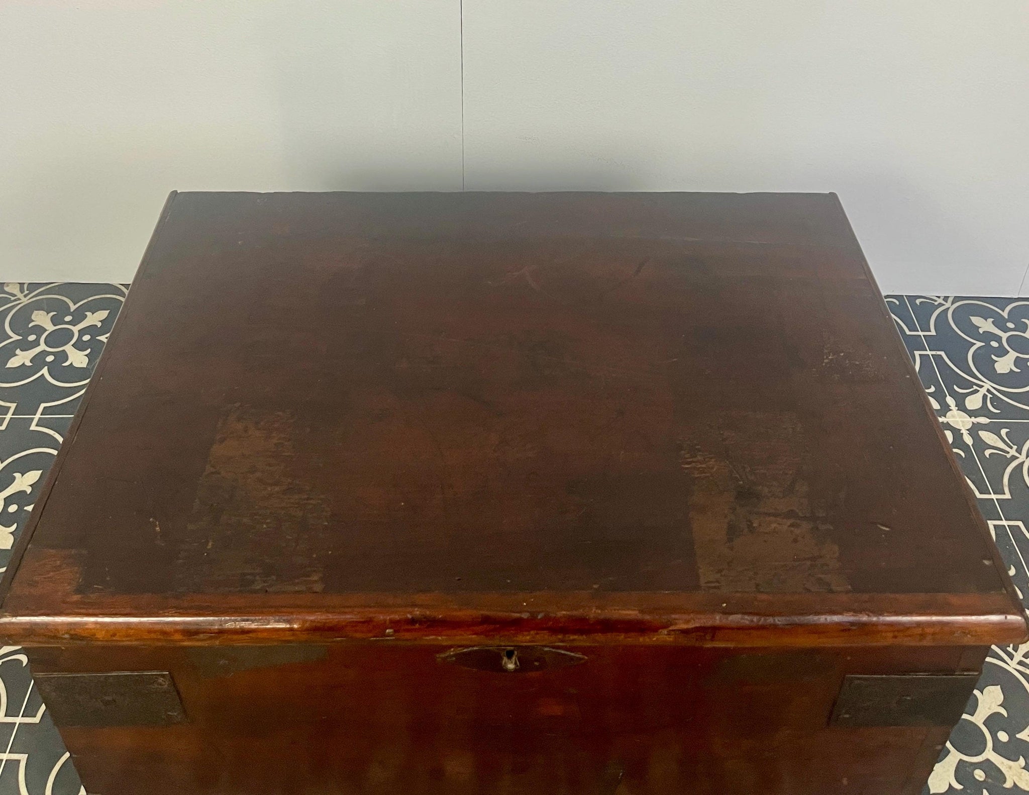 Antique 19th-century military naval officer's sea chest, also known as a campaign chest or ditty box, in rich, dark oak. Historically used by sailors and officers to store personal belongings during voyages.