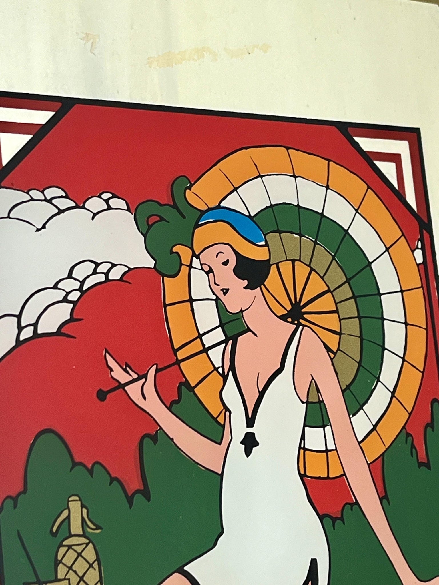 The art print is an Art Deco style fashion illustration by the British artist Linda Joy Green (1905–1993).