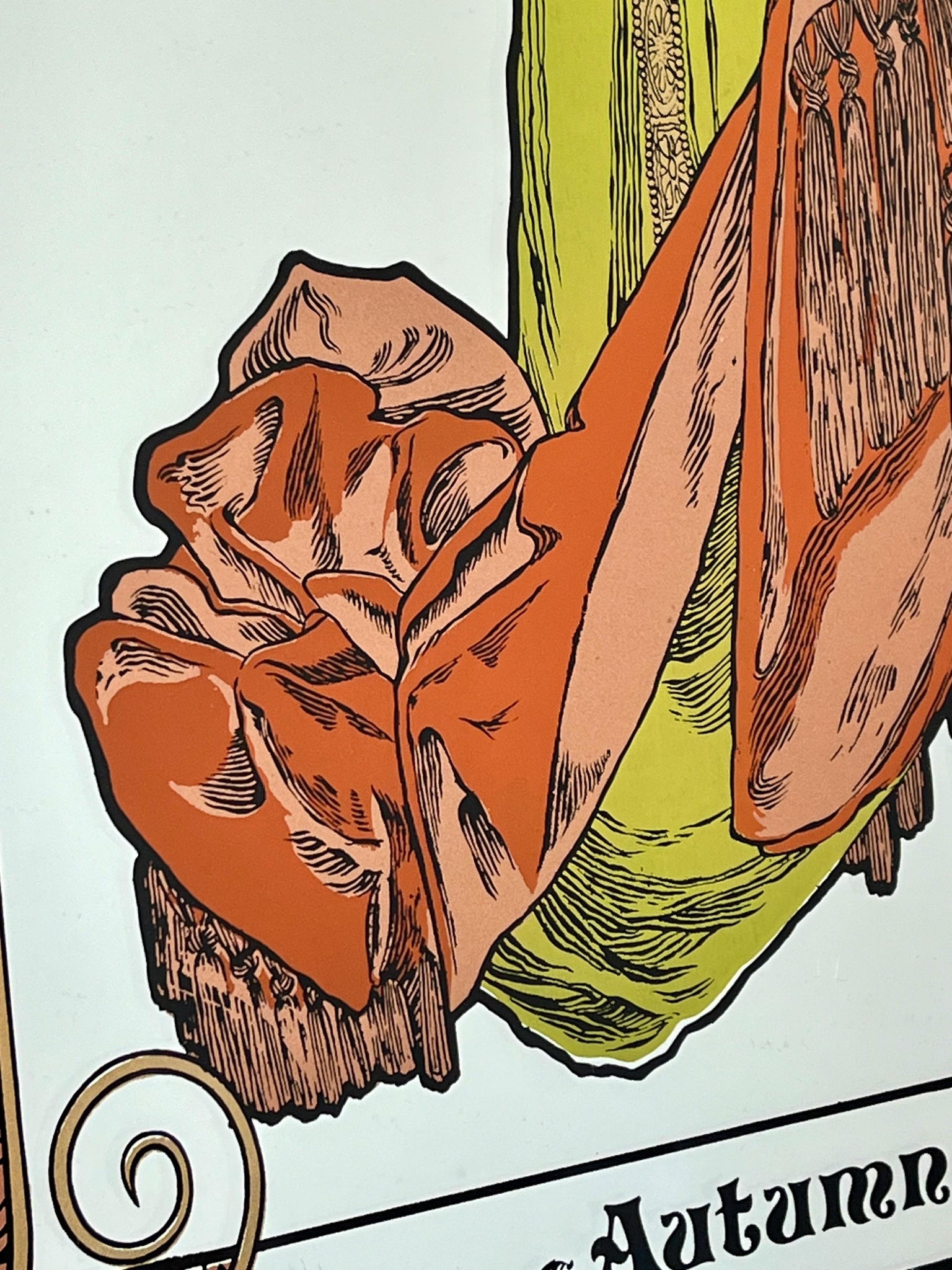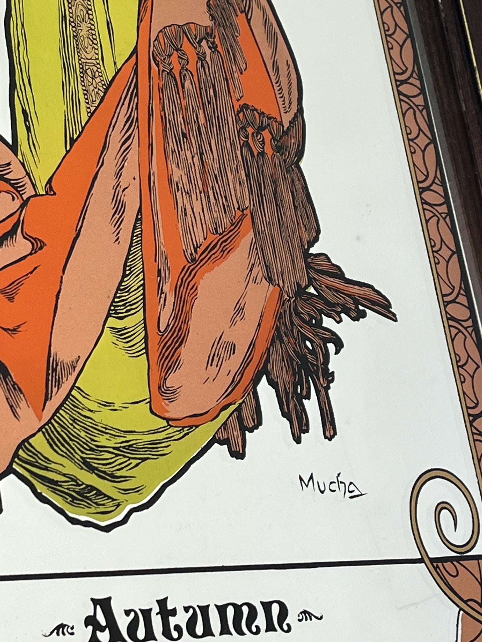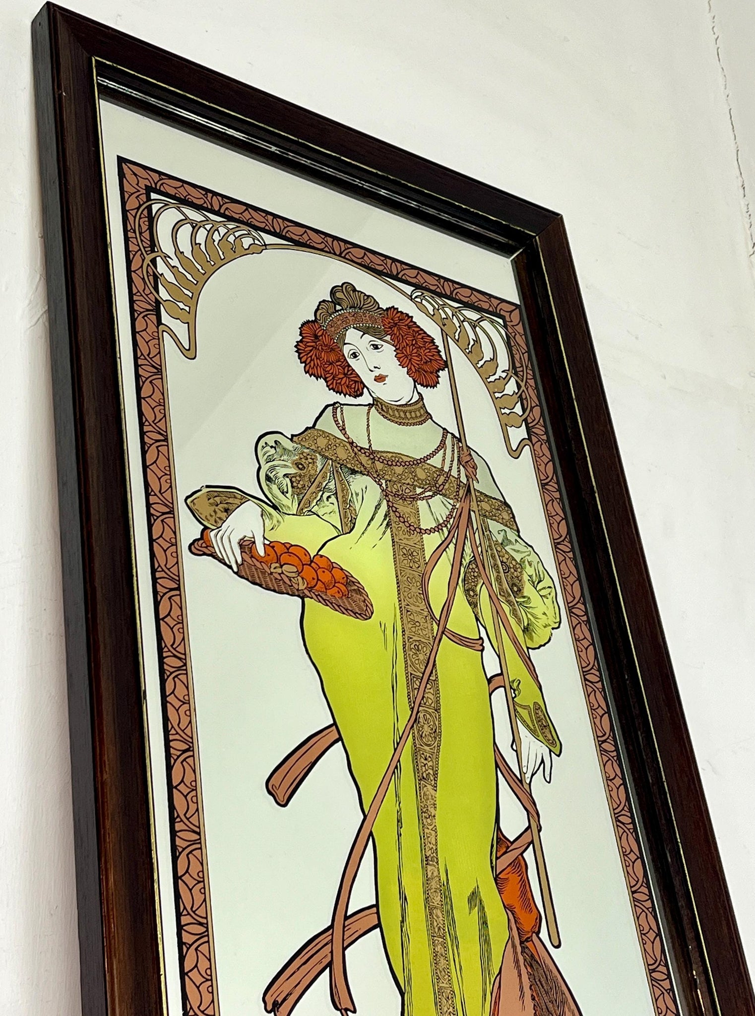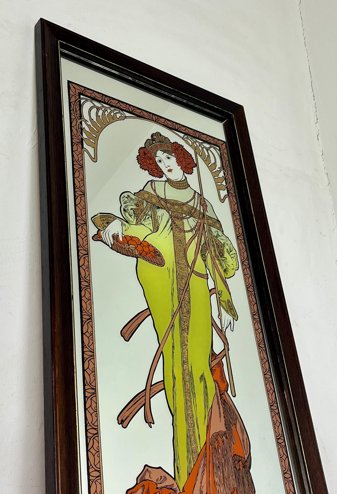Vintage Art Nouveau mirror showing Alphonse Mucha's Autumn from his influential 1896 series, The Seasons.