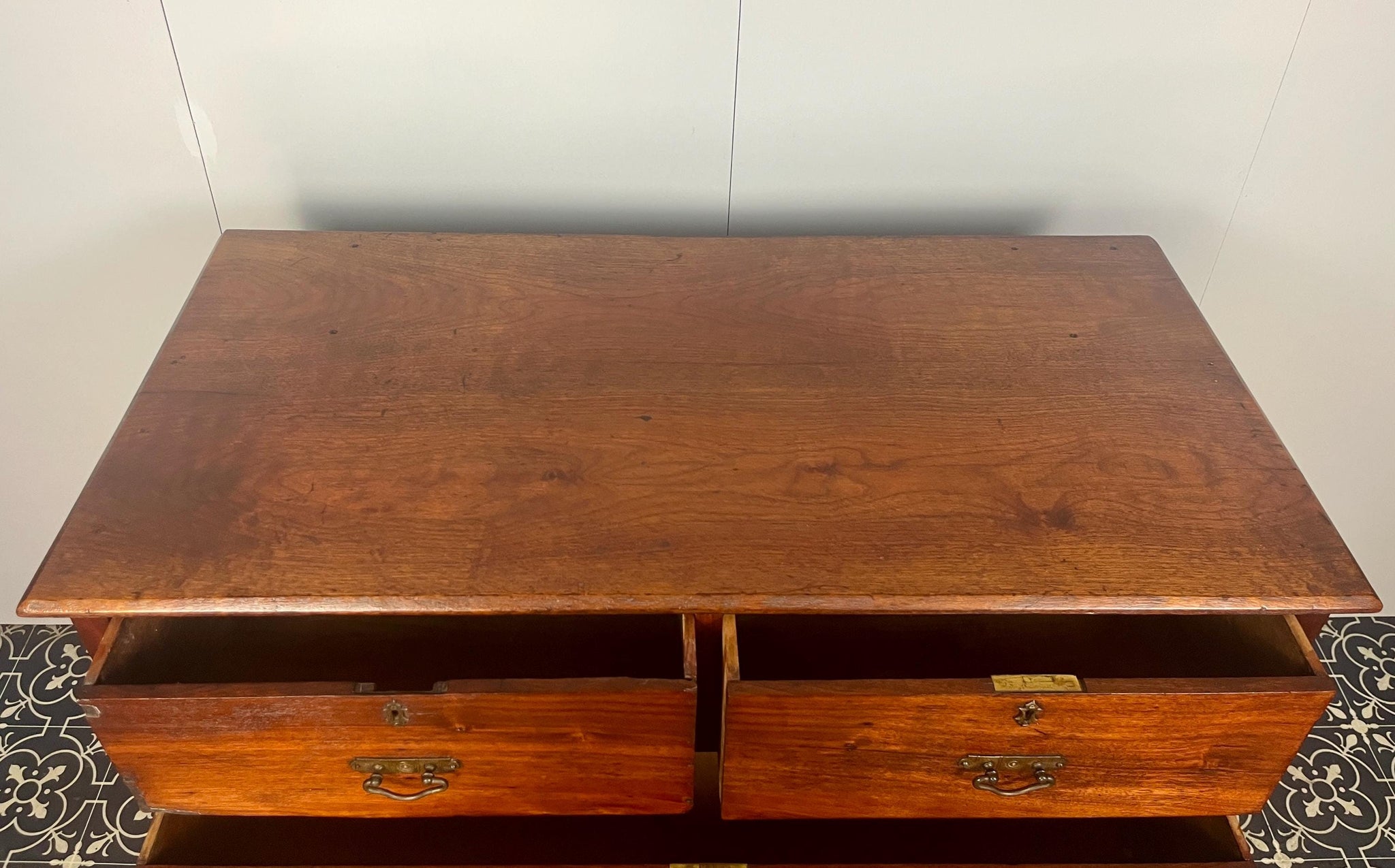 Some authentic patina, minor marks, and period small wood patching on a couple of drawers, which add to the charm of the piece. One lock is missing on the interior.