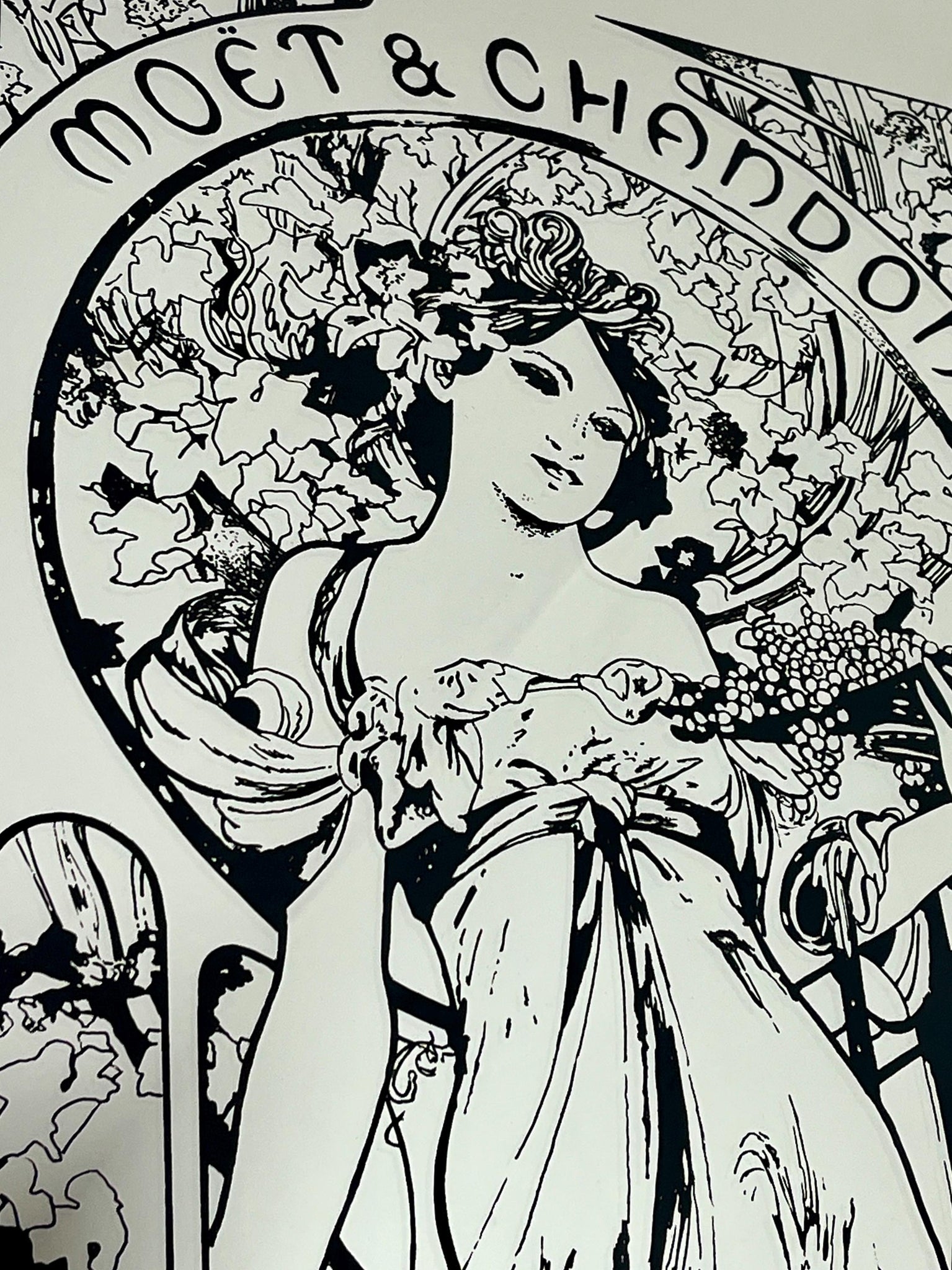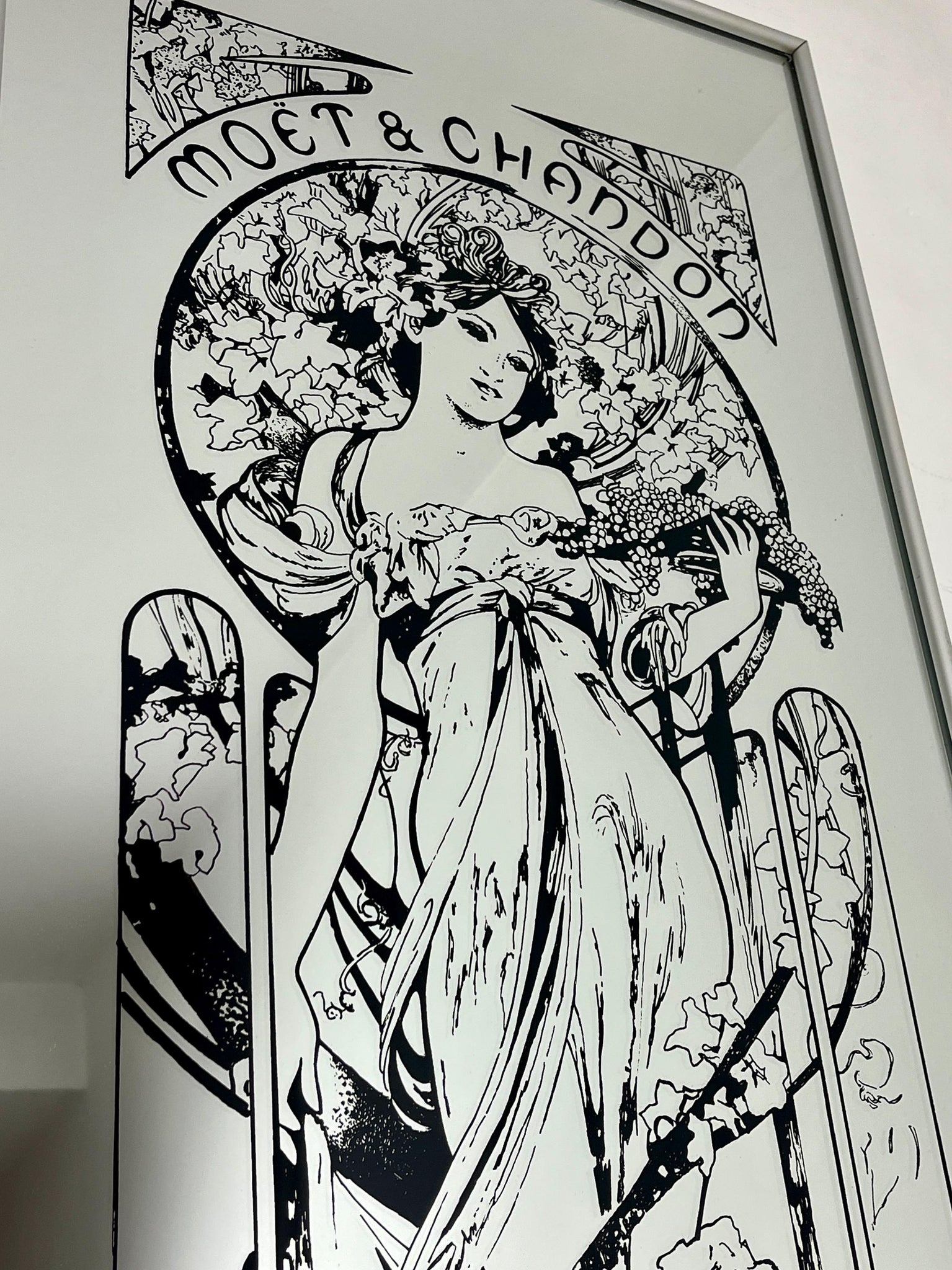 Beautiful Vintage Moet and Chandon Mucha Mirror