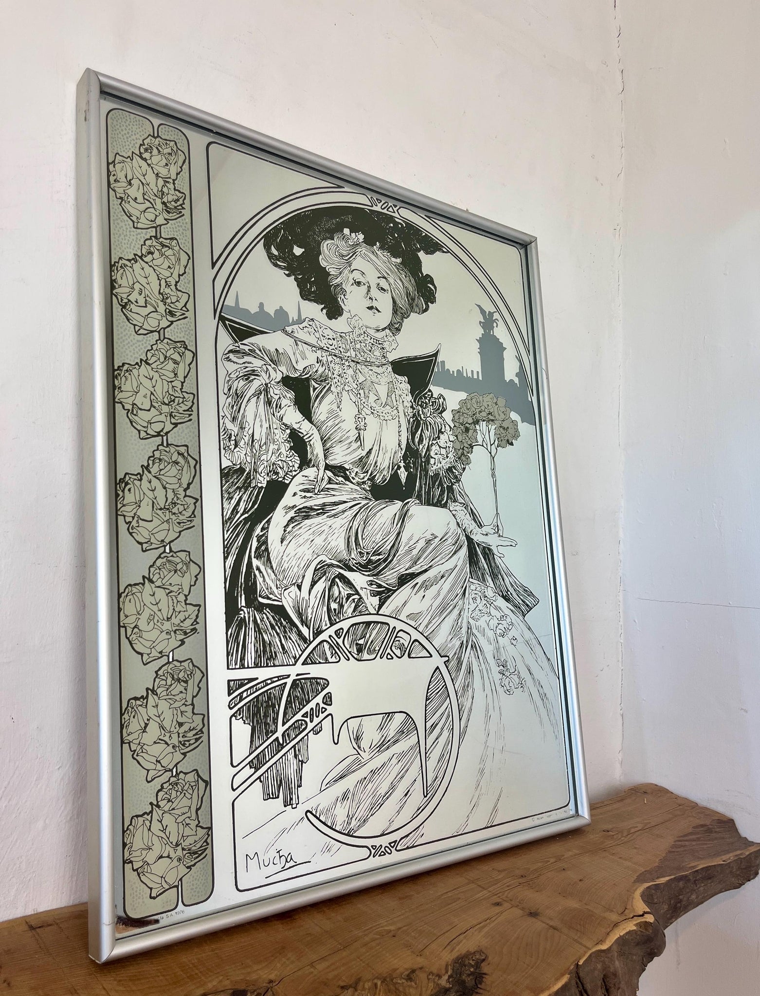Beautiful mirror created by Art Nouveau master Alphonse Mucha (1860–1939) as the cover for the Christmas (Noël) 1903 edition of the French magazine Paris Illustré.