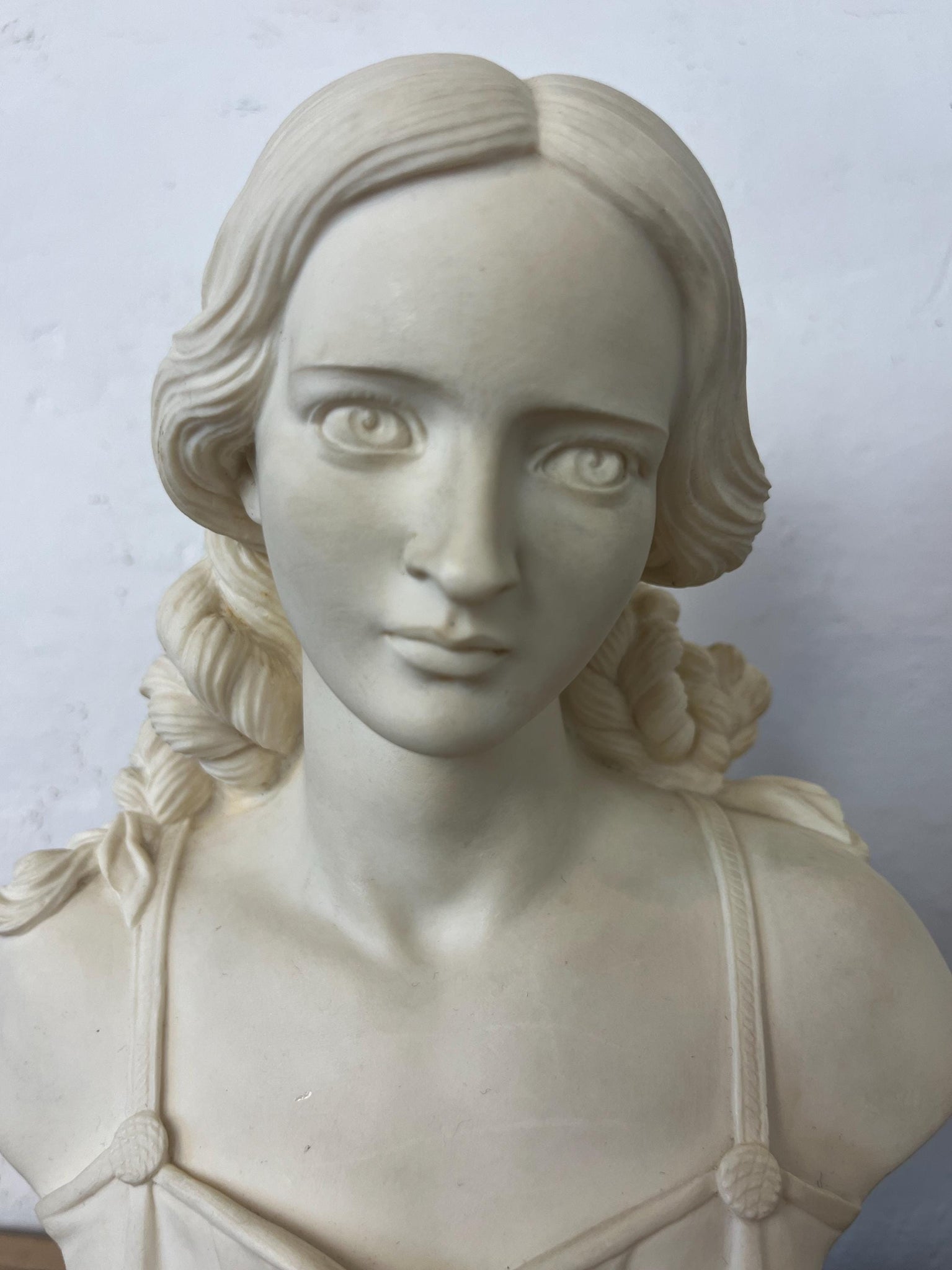 Beautiful vintage classical-style female bust, inspired by 19th-century works or ancient Greek and Roman sculptures that were popular during that era.