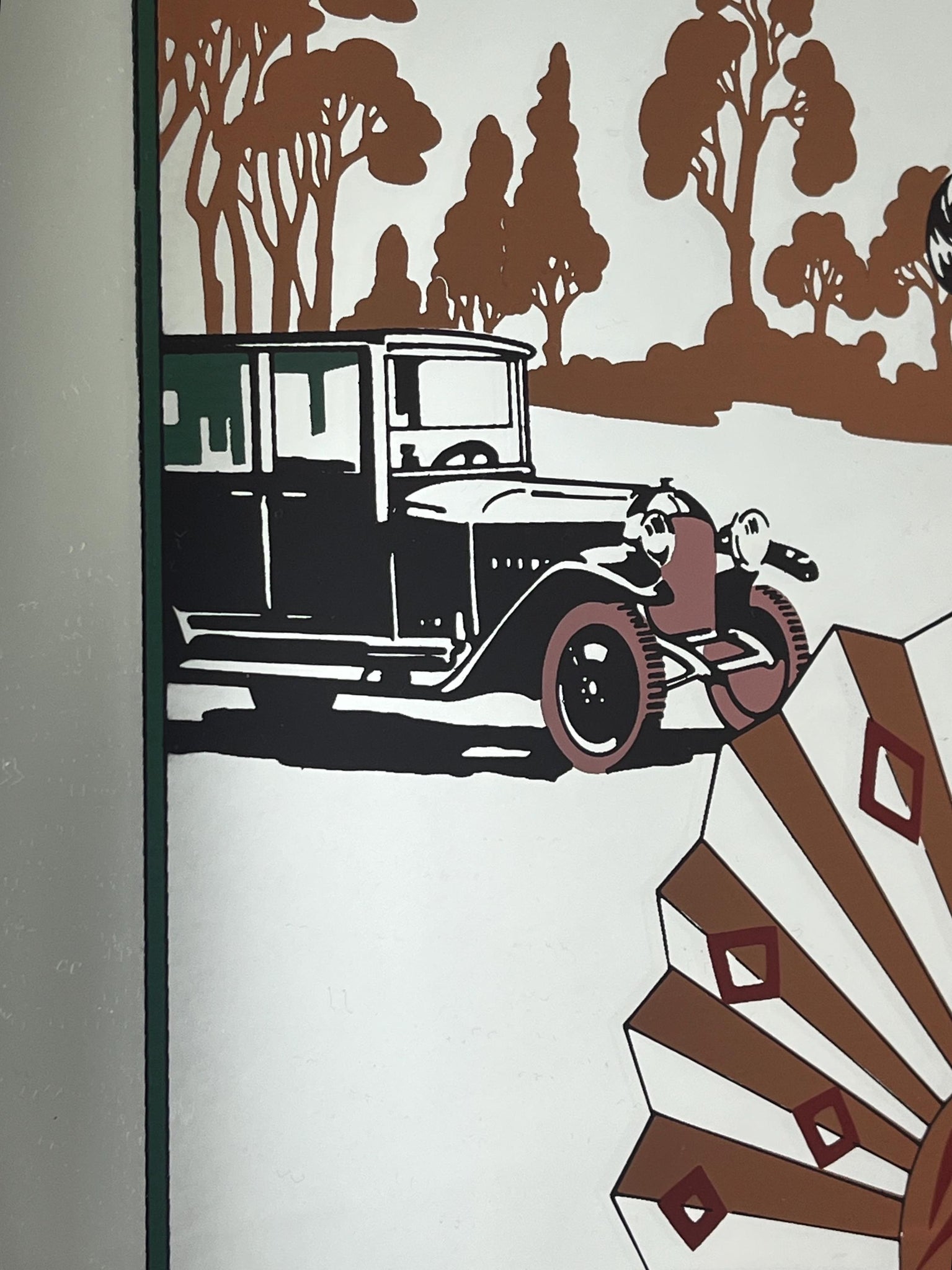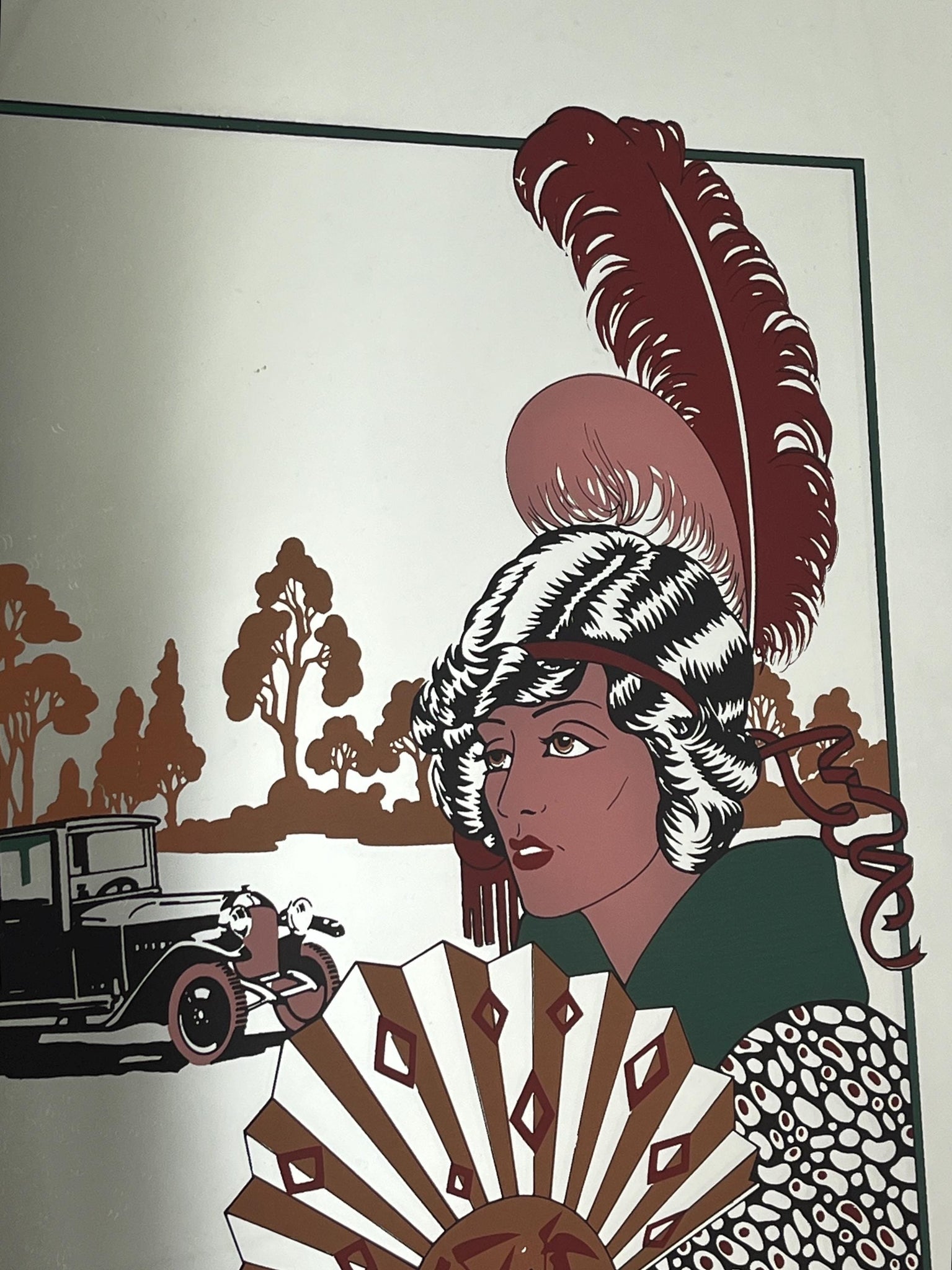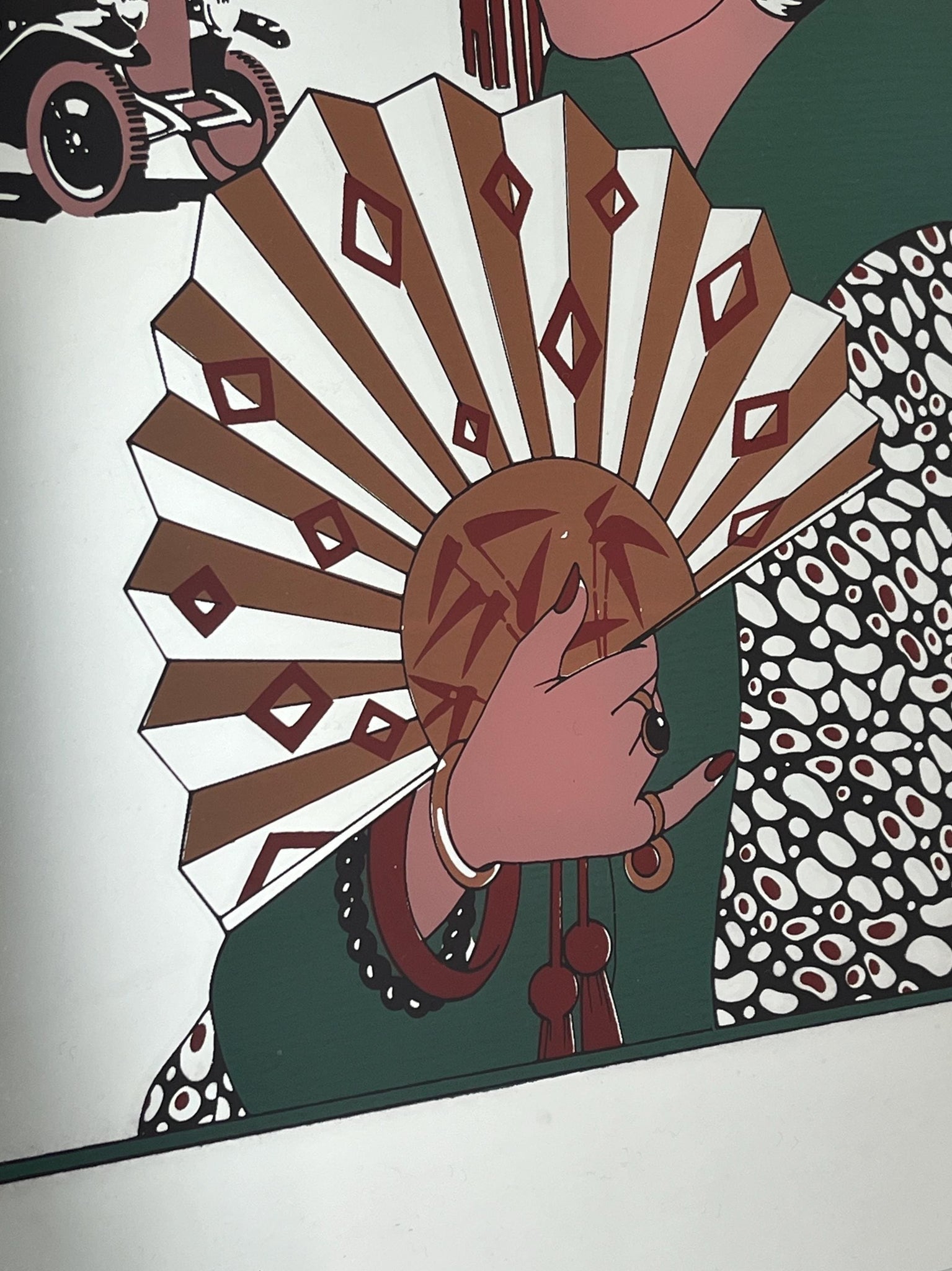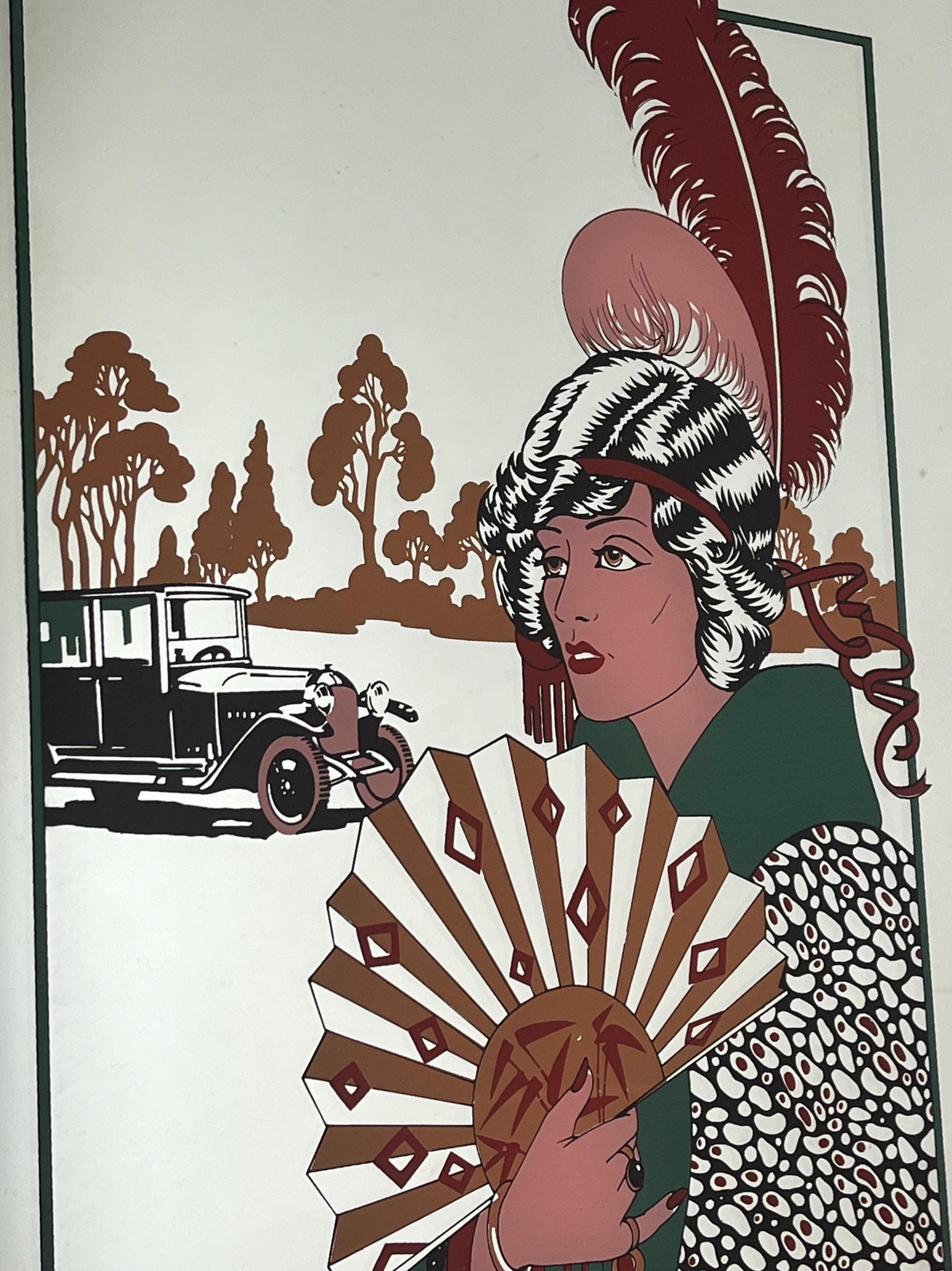 The piece highlights the style and stroke of the Art Deco era, depicting a glamorous, Parisian scene of a guest in evening dress waving as she leaves a party by car. Barbier was known for his ornate and luxurious style, capturing the fashion and spirit of the 1920s.