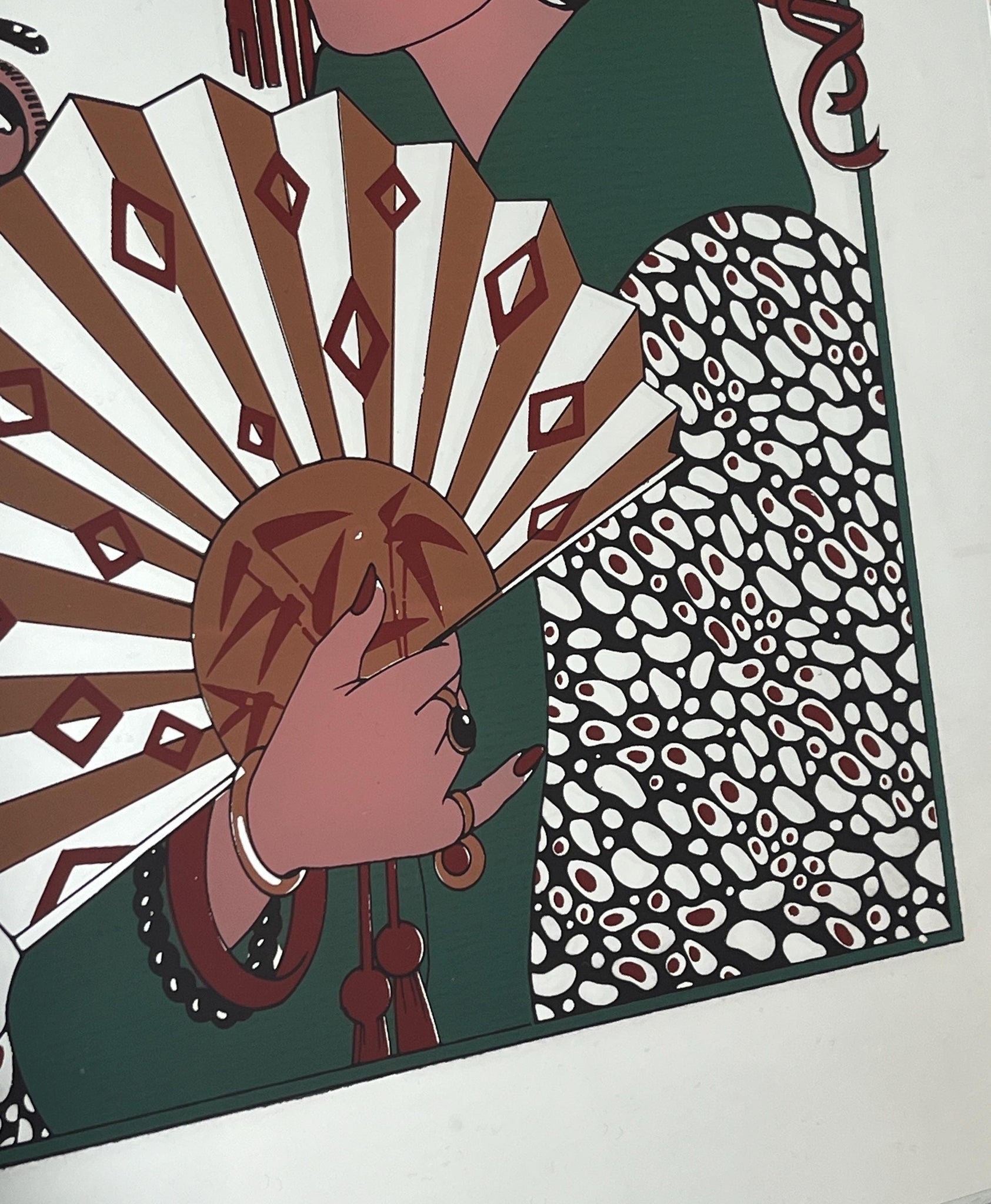 It was originally a colored pochoir (a stencil-based printing technique) and was featured as a fashion plate in an album by Barbier, with engravings by Henri Reidel.