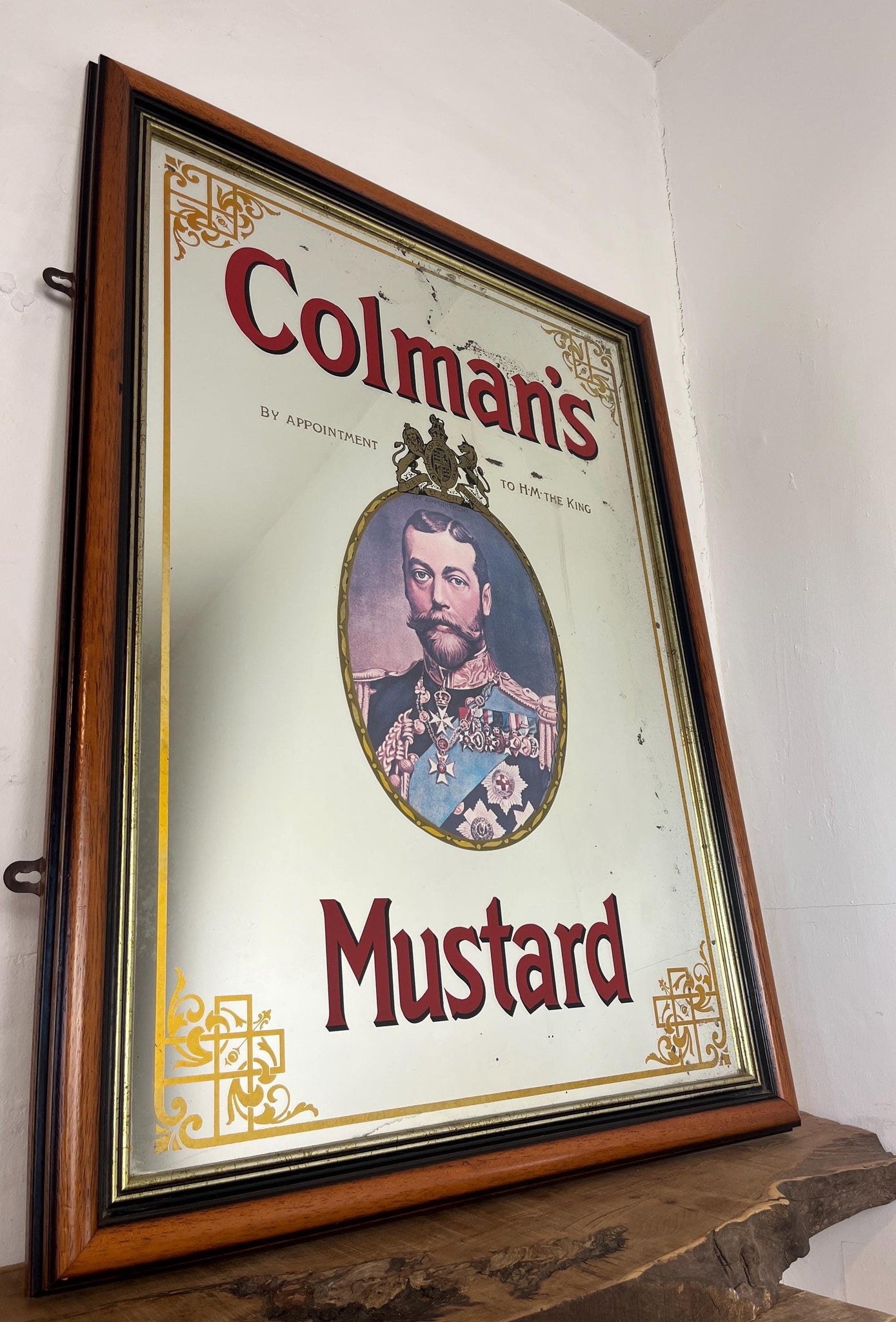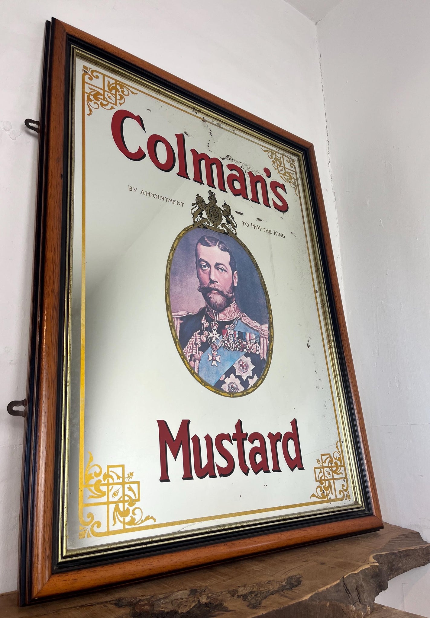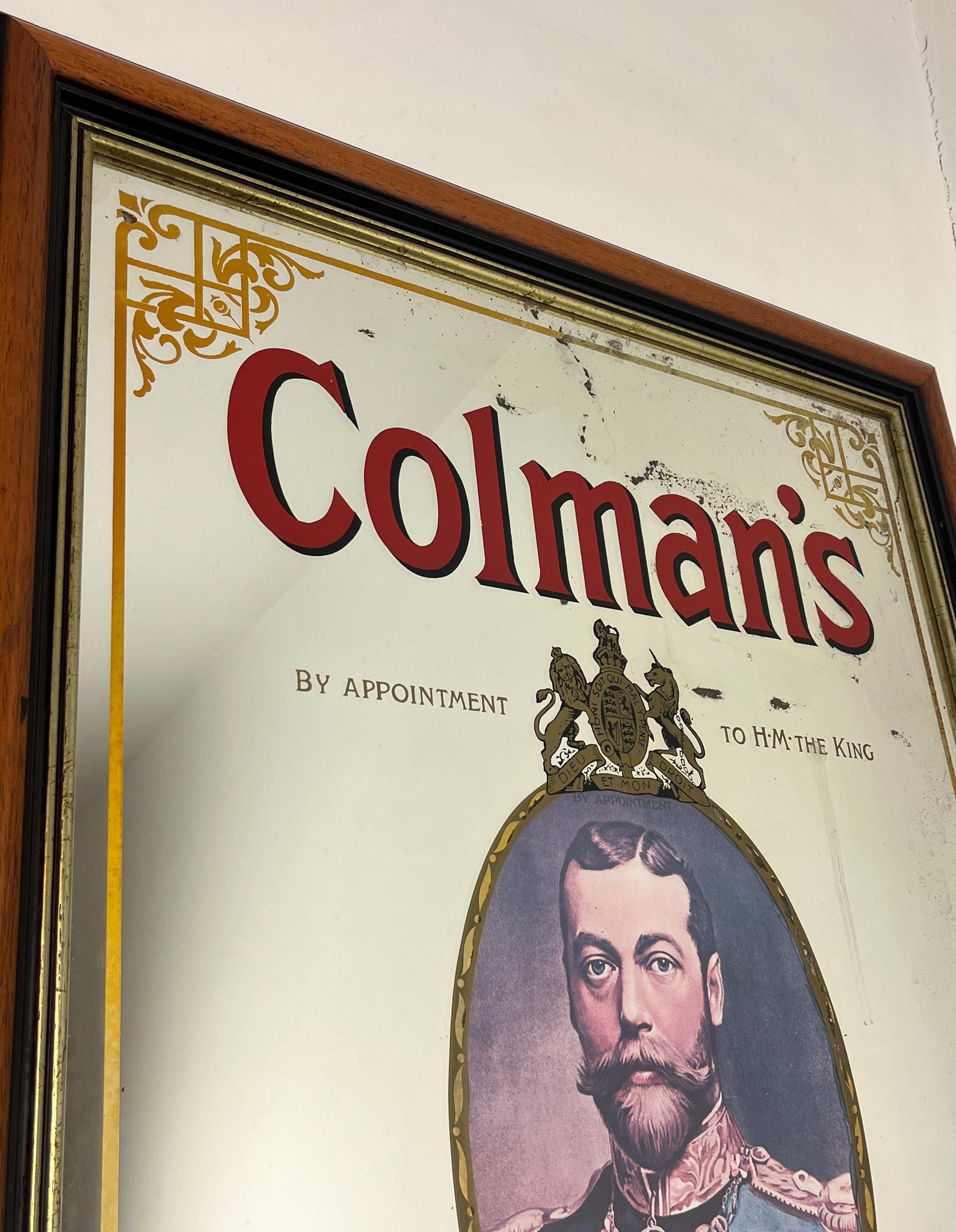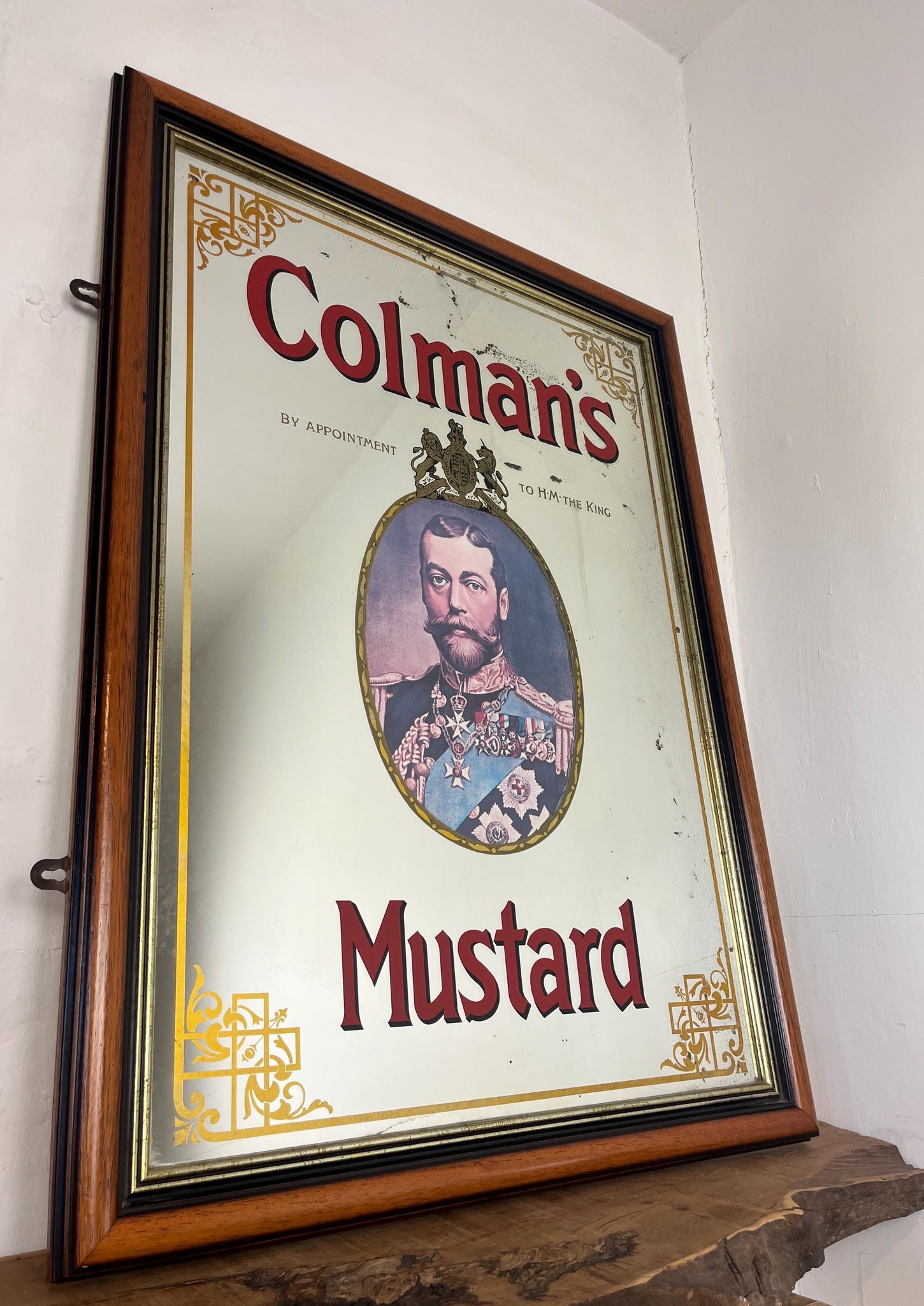 Colemans Mustard has always been a favourite with the Royal Family, in this mirror we even have a portrait of the king in the centre with the Royal Warrant By Appointment to H.M. The King, vibrant, stand-out red writing branding.